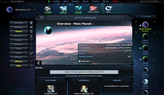 Eogame is a strategy game set in space, with thousands of players from across the world competing at the same time. You only need a regular web browser to play. Now you can register for free.
